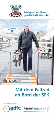 Leider ist es nicht gelungen, die Politik in Kiel sowie die Verkehrsunternehmen von einer kostenlosen Fahrradmitnahme zu überzeugen. Allerdings hat bei der Schlepp- und Fährgesellschaft mbH Kiel jetzt ein Umdenken stattgefunden. Dort hat man die Chancen eines kombinierten Fähre-Fahrrad-Verkehrs inzwischen erkannt und die SFK ist bereit, das Faltrad als kostenlose Mitnahme-Möglichkeit offensiv zu bewerben. Zusammen mit dem Verein FördeFördern e.V., dem ADFC, dem Fahrradforum und Falt-radanbietern will ein Runder Tisch jetzt ein vergünstigtes „Klapprad“ zum Kauf anbieten, das auf den Fördeschiffen ohne zusätzliche Kosten mitgenommen werden darf. Diese Alternative soll breit in der Öffentlichkeit beworben werden und zum Sommerfahrplan 2015, vielleicht auch schon früher, statt-finden.